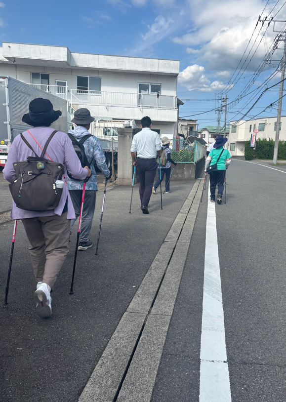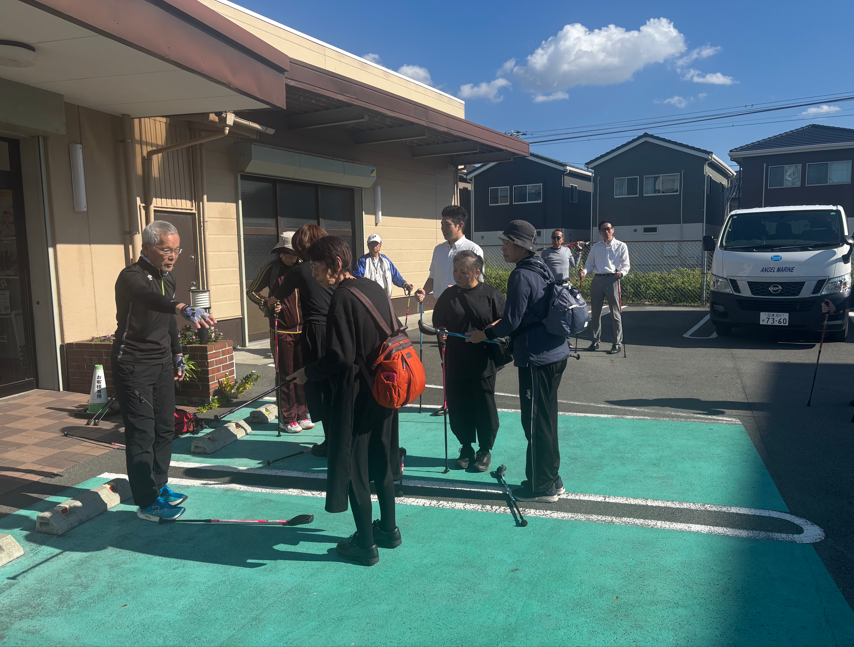初めて体験される方、数年ぶりに体験される方もいらしたため、久しぶりに井草さまからお話を聞きウォーキングの知識を深めることからスタート。ポールの高さ調整や正しい歩き方の基本をレクチャーしていただき出発。