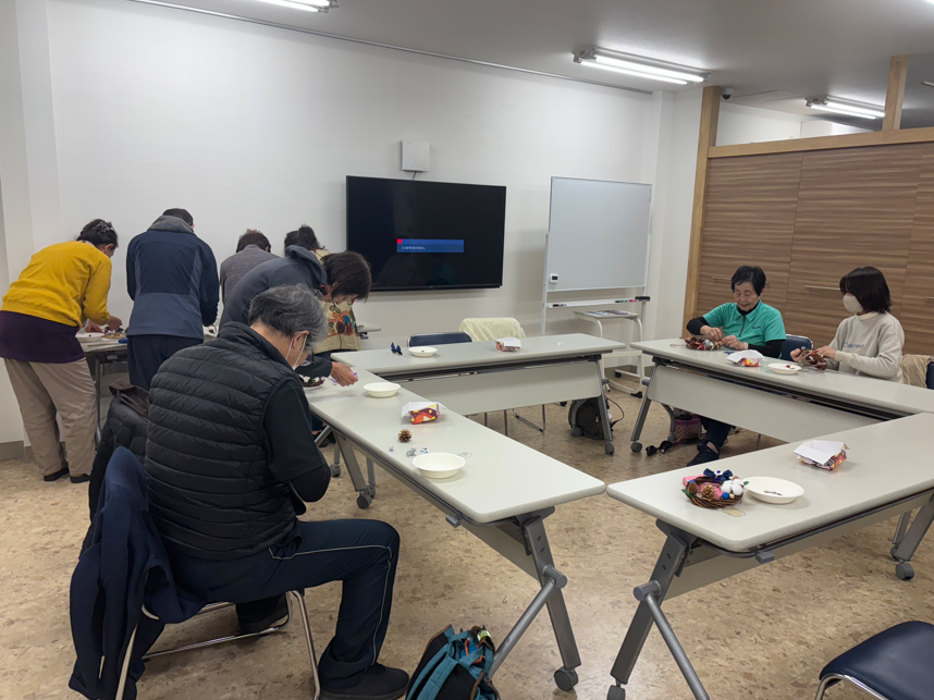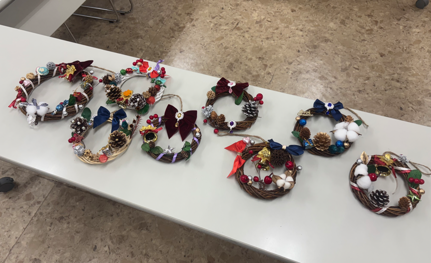おのおのリースに飾りつけたいパーツを選び、黙々とリースづくりに励んでくださいました。