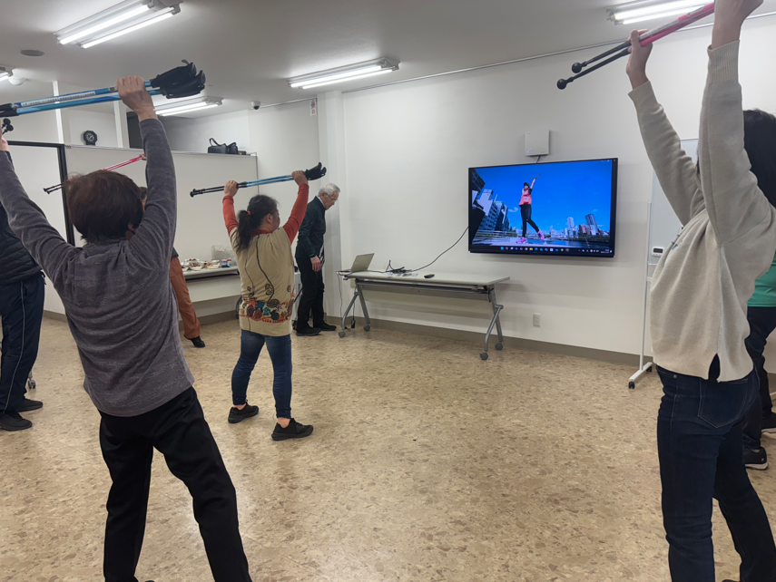 当日はあいにくの雨模様。室内でできるストレッチや運動をメインに体験会を実施しました。